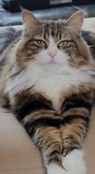 This very special chocolate tabby Norwegian Forest cat has better credits than most actors! Father Figures, Spiderman and Venom are just a few!