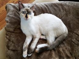Personality deluxe! This Siamese cross has a lovely unusual tortie point paint job and has been in commercials